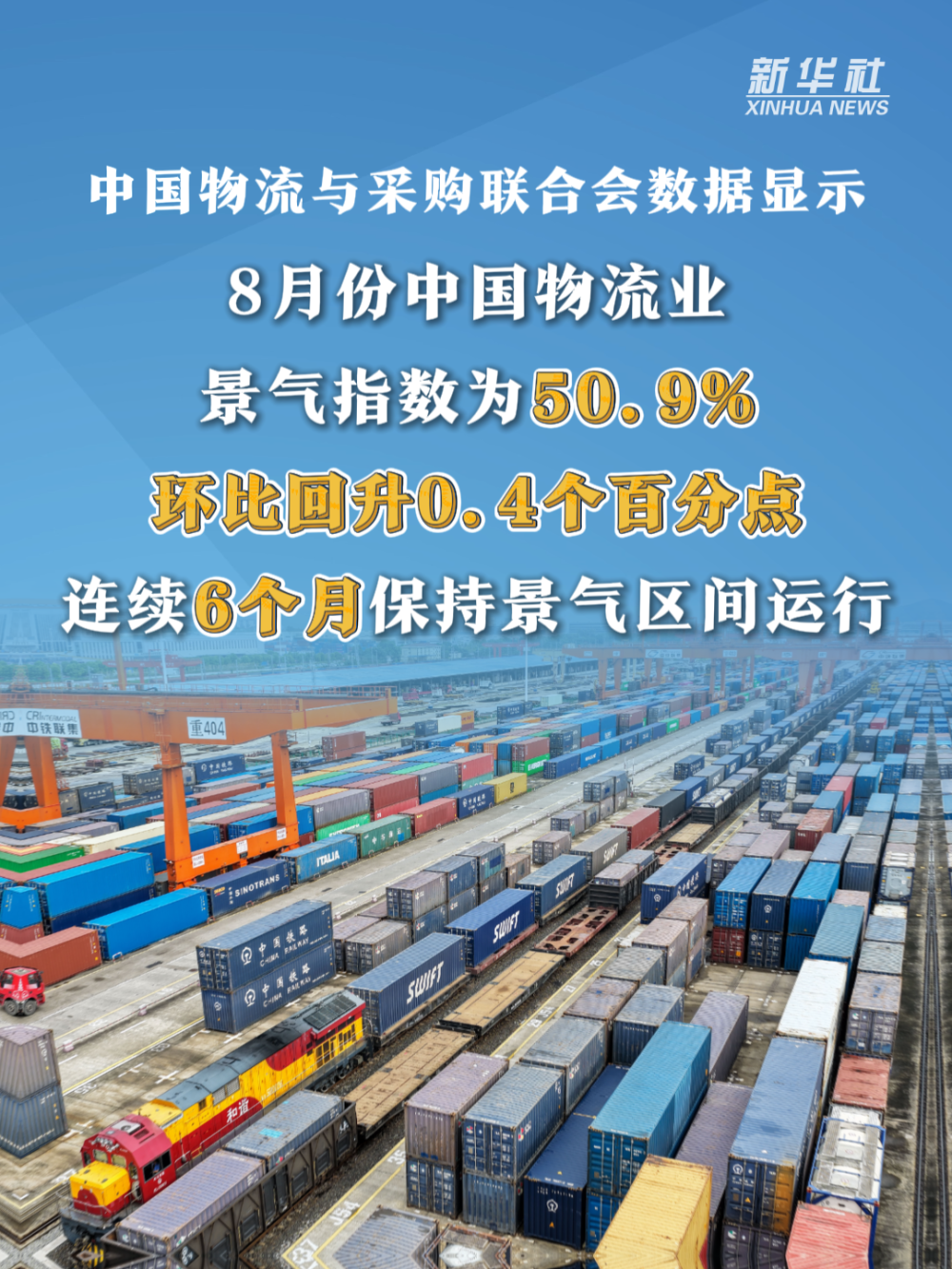 近期,中國國家鐵路集團(tuán)有限公司、中國物流與采購聯(lián)合會、國家郵政局等發(fā)布多項(xiàng)數(shù)據(jù)。數(shù)據(jù)顯示,今年前8個(gè)月,全國鐵路發(fā)送旅客創(chuàng)歷史同期新高,物流業(yè)景氣指數(shù)連續(xù)6個(gè)月保持景氣區(qū)間運(yùn)行,郵政行業(yè)寄遞業(yè)務(wù)量同比增長15.5%……多項(xiàng)數(shù)據(jù)折射出我國“人享其行、物暢其流”的經(jīng)濟(jì)活力。