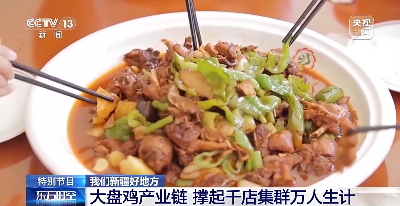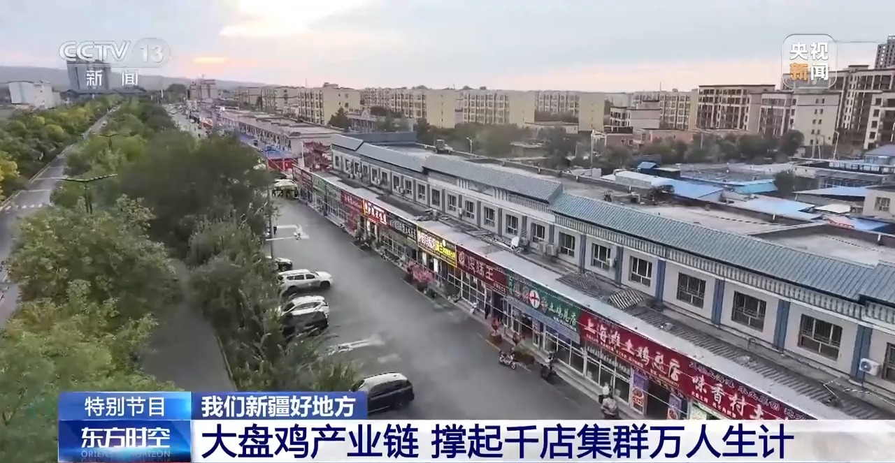 總臺(tái)央視記者 張叢婧:在新疆沙灣市的“大盤雞一條街”,這里幾乎家家戶戶都在做大盤雞,此時(shí)整條街都彌漫著香味。很多人知道新疆大盤雞,但可能并不知道,它的發(fā)源地就在這里。