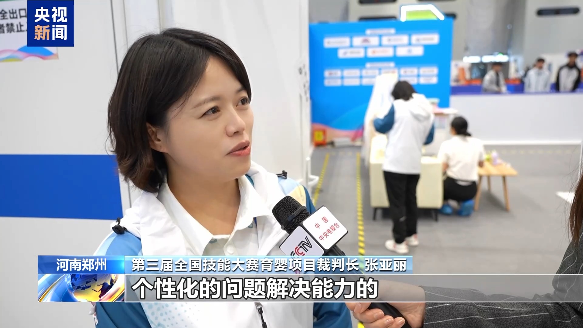 第三屆全國(guó)技能大賽育嬰項(xiàng)目裁判長(zhǎng) 張亞麗:我們借鑒了世界技能大賽的一些有益做法,去提升我們整體的職業(yè)標(biāo)準(zhǔn)和服務(wù)水平。
