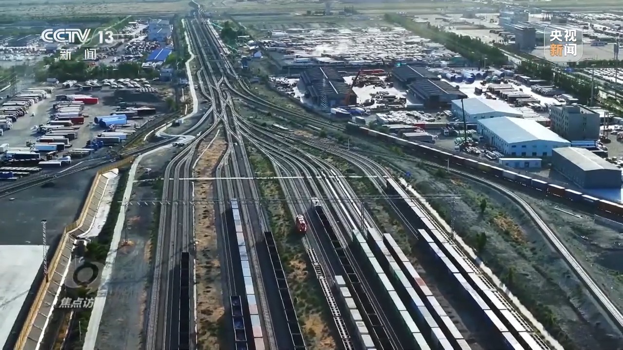 今天的新疆,早已不是封閉偏遠(yuǎn)的西北邊陲,而是向西開放的前沿和服務(wù)國家新發(fā)展格局的戰(zhàn)略支點(diǎn),它擁有5700公里邊境線,19個(gè)對(duì)外開放的口岸。在邊境口岸城市霍爾果斯,如今平均一小時(shí)就有一列滿載的列車出入境。從2016年,第一列中歐班列過境霍爾果斯站,不到10年,已有超過47000列中歐(中亞)班列經(jīng)過。