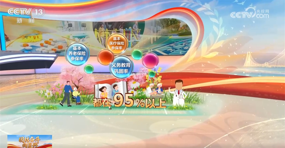 這五年,經(jīng)濟(jì)發(fā)展、科技進(jìn)步的成果實(shí)打?qū)嵉剞D(zhuǎn)化為群眾的獲得感和幸福感。我國已建成全球規(guī)模最大的教育體系、社會(huì)保障體系、醫(yī)療衛(wèi)生體系,義務(wù)教育鞏固率和基本養(yǎng)老保險(xiǎn)、基本醫(yī)療保險(xiǎn)參保率都在95%以上。