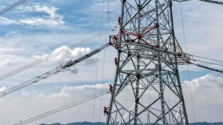 2025年10月1日,重慶送變電公司施工人員在哈密至重慶特高壓直流受端500千伏配套工程(二期)作業(yè)現(xiàn)場(chǎng)工作。新華社發(fā)(周亞 攝)