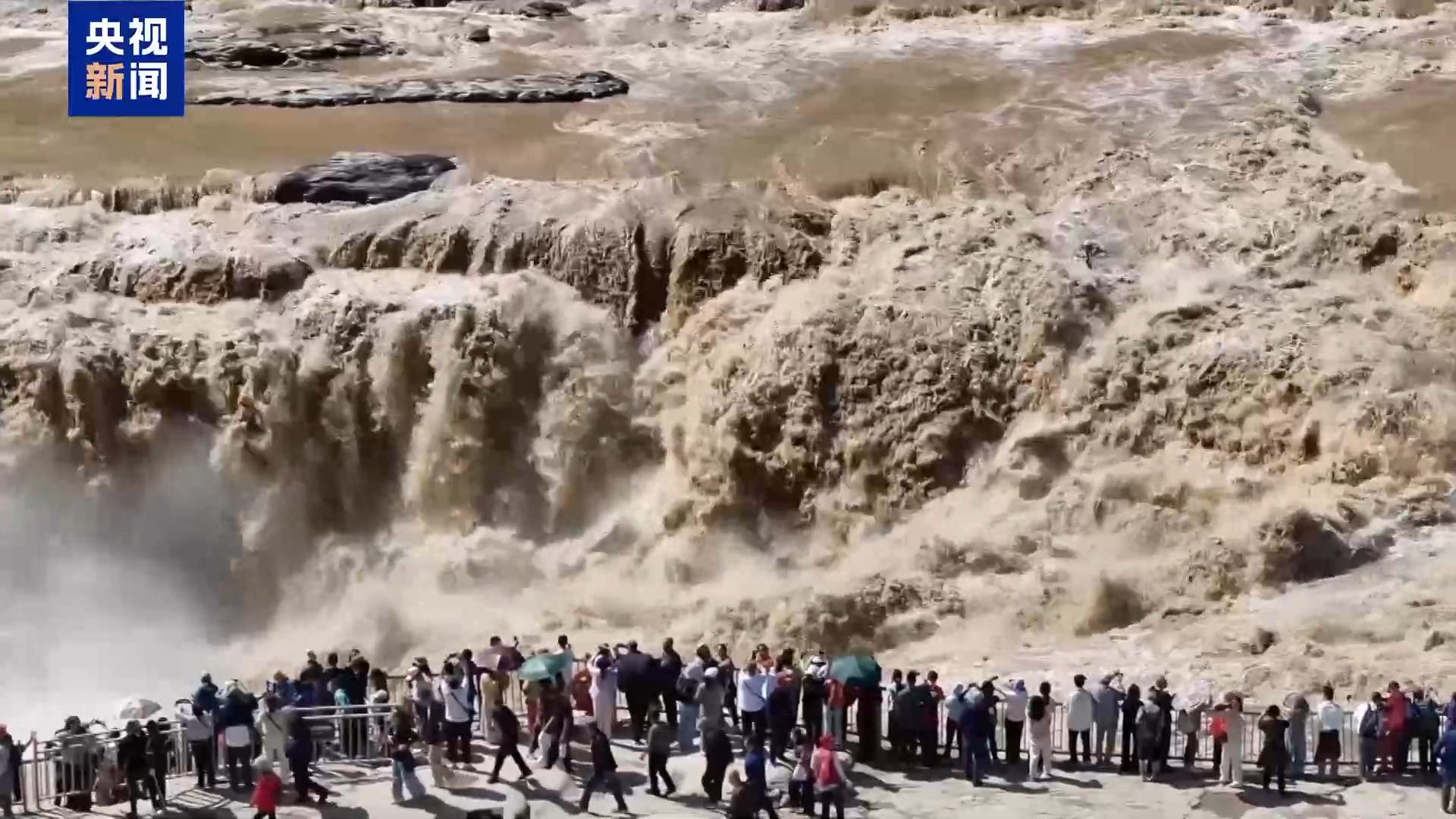 遠(yuǎn)遠(yuǎn)望去,黃河水奔騰著,呼嘯向前,水霧在岸邊漫開;陽光穿破云層,折射出一道道絢爛彩虹。晉陜峽谷中,黃河以獨(dú)有的磅礴氣勢(shì)與詩意之美,吸引著八方來客。