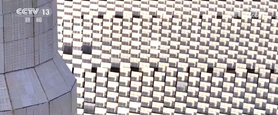園區(qū)中,23000多面定日鏡如同一個(gè)個(gè)精準(zhǔn)的“追光者”,通過智能控制系統(tǒng)實(shí)時(shí)追蹤太陽軌跡,將分散的太陽光集中反射到高達(dá)200多米的吸熱器上,再通過大容量熔鹽儲(chǔ)熱系統(tǒng),實(shí)現(xiàn)24小時(shí)連續(xù)穩(wěn)定供電。