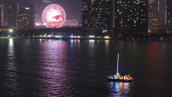 “雙節(jié)”假期期間,在河北省秦皇島市金夢海灣商務旅游度假區(qū),全新夜間游船點亮海面,沿海觀光車穿梭其間,串聯(lián)起文化市集與特色酒吧,吸引大量游客紛至沓來。