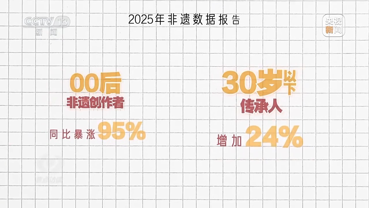 也許有人覺得這些故事太個別,所以我找到了某短視頻平臺今年的非遺數(shù)據(jù)報告,也很能說明問題。報告中提到,一年來00后非遺創(chuàng)作者同比暴漲95%,30歲以下傳承人增加24%。越來越多年輕人主動扛起了傳承的擔(dān)子。為啥他們愿意一頭扎進(jìn)這些“老行當(dāng)”?我找到了幾位新生代代表性傳承人,試著解開這份“偏愛”背后的密碼。