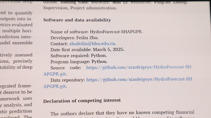 朱非林在學(xué)術(shù)研究中有一個特別的堅持——公開分享自己的代碼。早在2017年,他就將防洪決策的模型代碼公開,美國、印度及國內(nèi)的學(xué)者紛紛與他聯(lián)系,在他開發(fā)的模型基礎(chǔ)上進行深化研究,推動了整個方向的發(fā)展。"水利行業(yè)是造福人民的事業(yè),不應(yīng)該有圍墻。"朱非林的想法很簡單,一項技術(shù)只有被更多人使用、檢驗和完善,才能發(fā)揮更大價值,更快推動整個行業(yè)進步。個人的工作如果能給其他研究者或工程單位帶來啟發(fā)和幫助,其意義就遠超一篇論文本身。