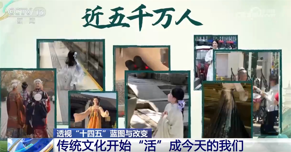 央視網(wǎng)消息:過(guò)去,我們?cè)谡n本里背古詩(shī)、學(xué)歷史;今天,我們身著漢服走上街頭,在旅行打卡、短視頻創(chuàng)作中重新感受傳統(tǒng)。五千年的文化正在從書(shū)頁(yè)走向街頭,從展廳走進(jìn)生活,成為我們?nèi)粘5囊徊糠??!笆奈濉钡奈迥?,讓文化真正“活”在了?dāng)下,也“活”進(jìn)了我們的生活。