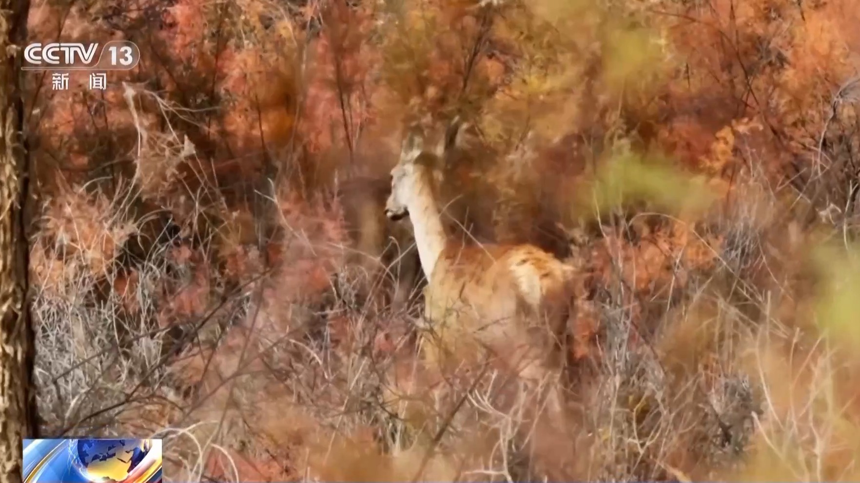 沙雅縣胡楊林保護中心主任 強利民:一棵成年的胡楊樹每年可以排出數(shù)十公斤的鹽堿。同時,胡楊林可以減少地表水的蒸發(fā),抑制土壤中的鹽分上升到地表,減少鹽堿化程度;胡楊樹葉落葉歸根后可以增加土壤的肥力,近幾年,沙雅縣胡楊林經(jīng)常可以看到狐貍、馬鹿、黃羊等野生動物。