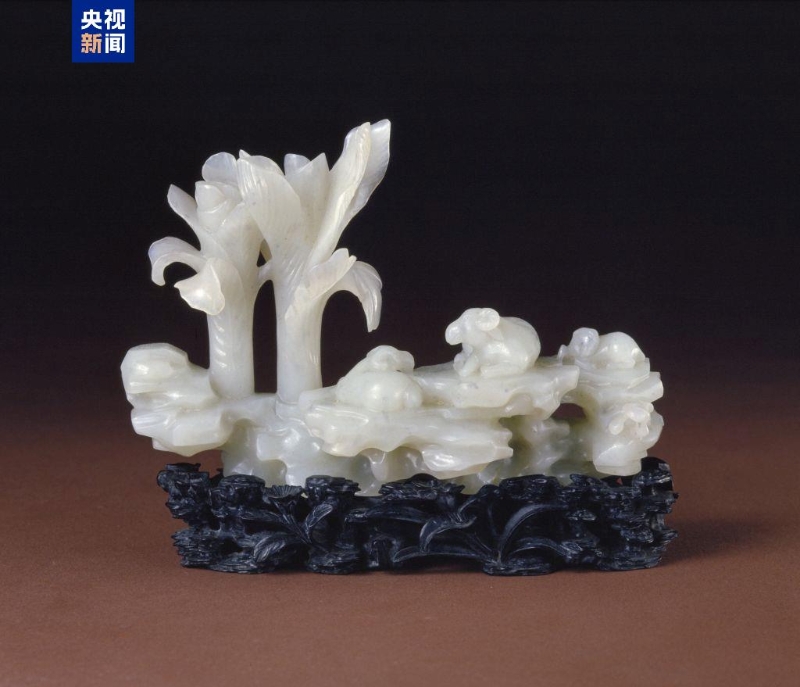 青玉三羊蕉葉雙孔筆插,故宮博物院藏。