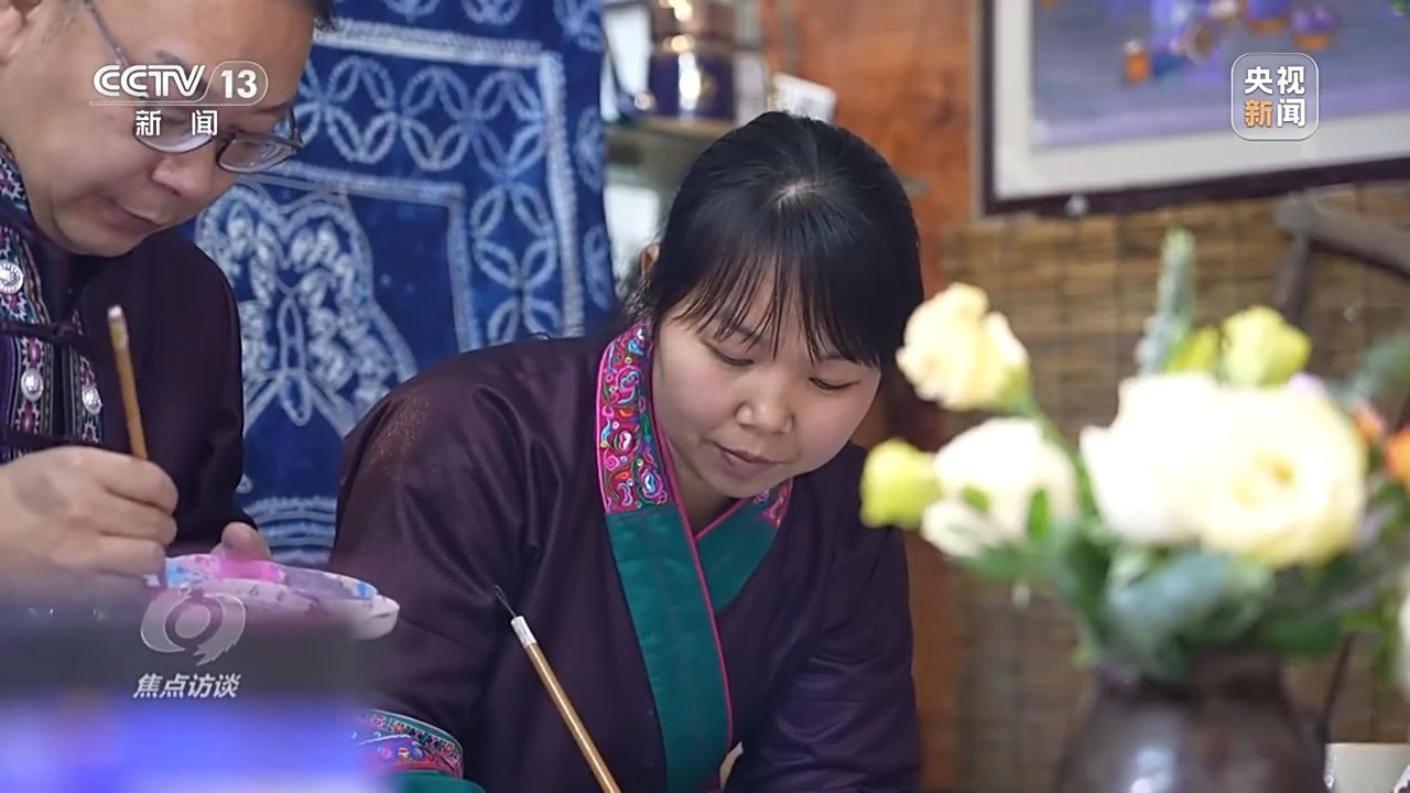陳美美:我還記得我女兒一直問我,媽媽天上是什么?我說是飛機。你努力讀書,我以后要跟著你一起去坐飛機。我沒想到我女兒還沒長大,我就因為畫畫坐飛機去了北京。真的畫畫改變了我,也改變了我們家鄉(xiāng)。