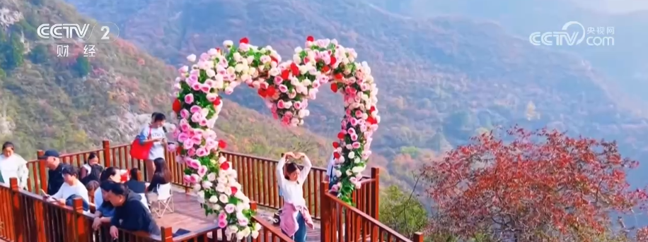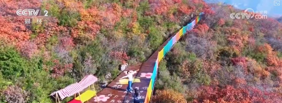 這里新落成的五彩步道全長(zhǎng)1300米,沿山脊蜿蜒鋪展,如一條絢爛彩帶鑲嵌于山間,每百米便有一處景致,步移景異。游客既能賞紅葉爛漫、覽太行雄姿,亦可于登高望遠(yuǎn)處邂逅一場(chǎng)秋日視覺盛宴。