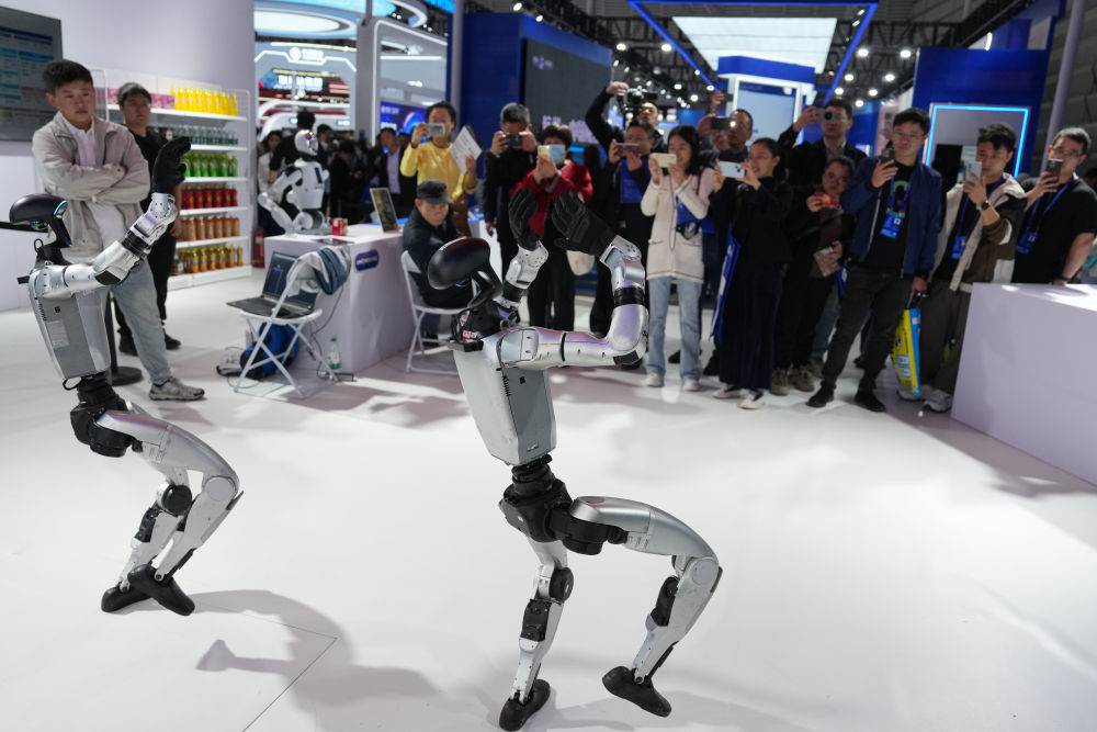 ↑ 11月6日,觀眾在2025年世界互聯(lián)網(wǎng)大會“互聯(lián)網(wǎng)之光”博覽會現(xiàn)場觀摩一家企業(yè)展示的人形機(jī)器人。新華社記者 黃宗治 攝