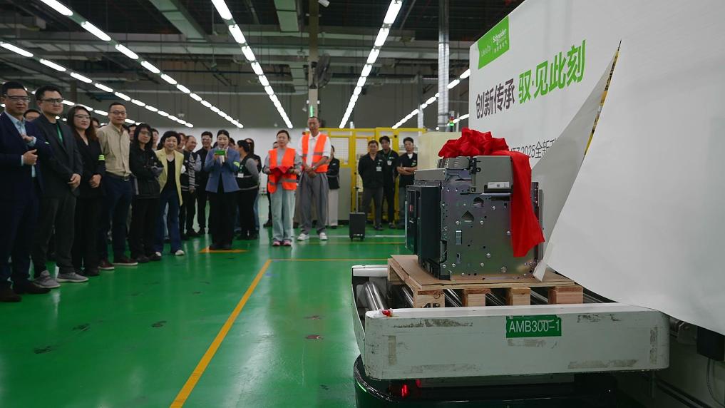 施耐德電氣全新升級的一款空氣斷路器產(chǎn)品在第八屆進博會現(xiàn)場首秀,并于7日在其上海康橋工廠正式下線。受訪者供圖