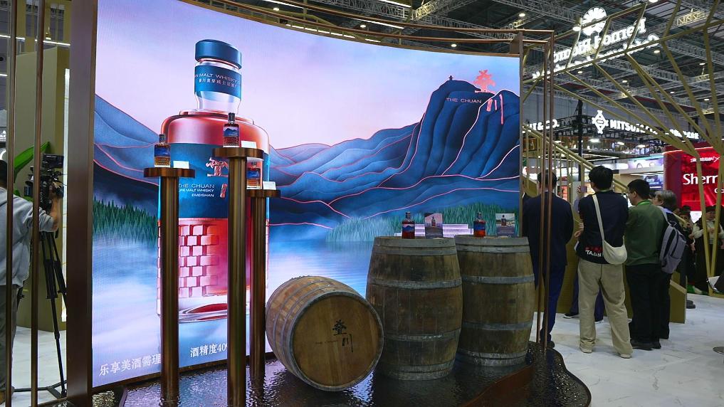 國際知名烈酒集團將首款中國原產(chǎn)威士忌疊川放在了展臺“C位”。受訪者供圖