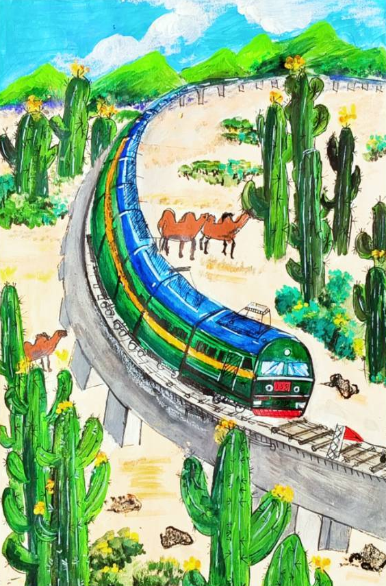 回家的路上,我翻著爸爸收藏的老照片:黑白照片里是詹天佑設(shè)計(jì)的京張鐵路;彩色照片中,嶄新的京張高鐵穿越居庸關(guān)隧道,智能列車(chē)自動(dòng)駕駛,外國(guó)人都豎起大拇指。爺爺常說(shuō)“鐵路是國(guó)家的脊梁”,如今,這脊梁挺得筆直,載著14億人的夢(mèng)想飛馳。