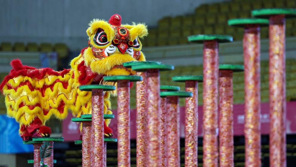 11月11日,粵港澳聯隊在第十五屆全國運動會群眾展演舞龍舞獅南獅自選項目決賽比賽中。最終,粵港澳聯隊獲得一等獎。 新華社記者 王鵬攝