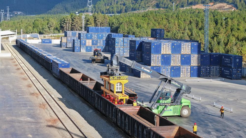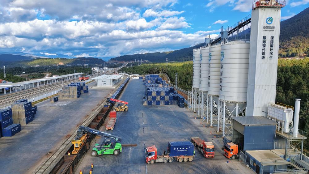 這是11月21日拍攝的云南迪慶藏族自治州小中甸站貨場(chǎng)(無(wú)人機(jī)照片)。