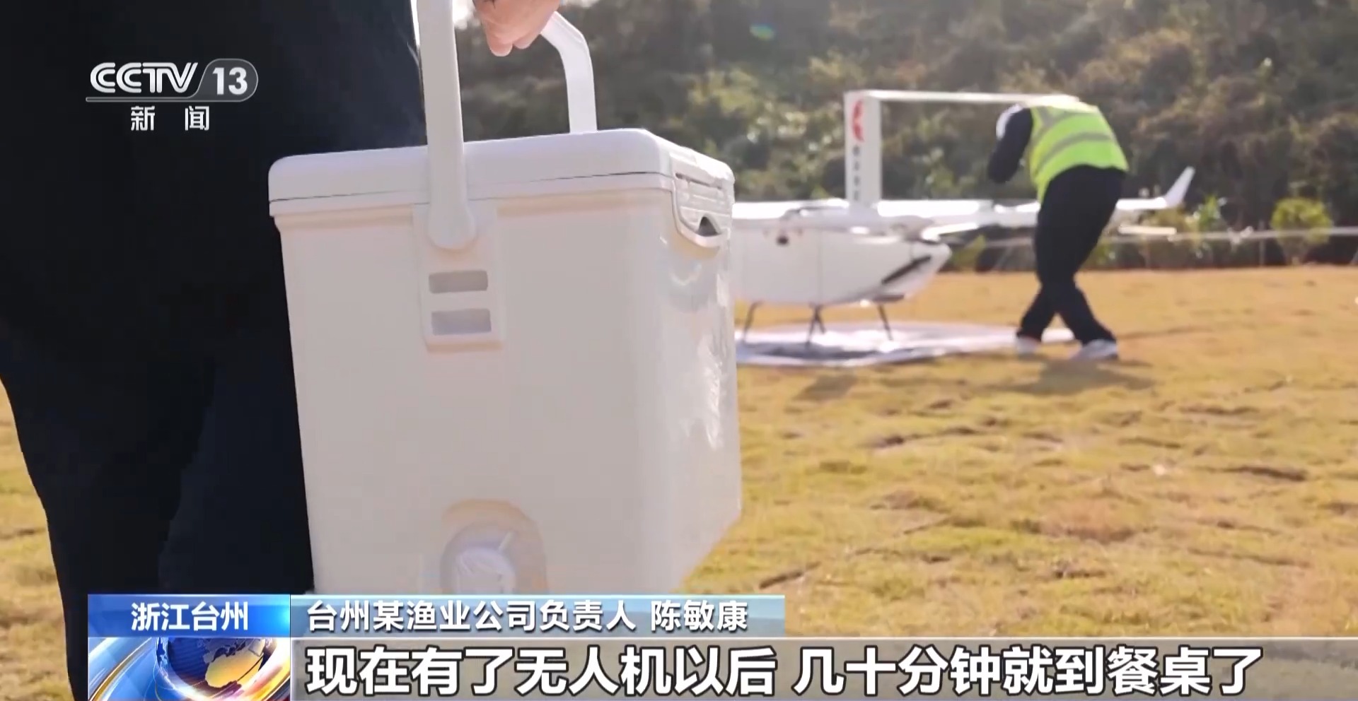 臺州某漁業(yè)公司負(fù)責(zé)人 陳敏康:以前我們魚捕上去運(yùn)到了市區(qū)都要好幾個小時,現(xiàn)在有了無人機(jī)以后,幾十分鐘就到餐桌了?,F(xiàn)在無人機(jī)的運(yùn)輸量比較小,但我們來看這個前景是比較好的,這也為我們島上的漁民開拓了致富的新路子。