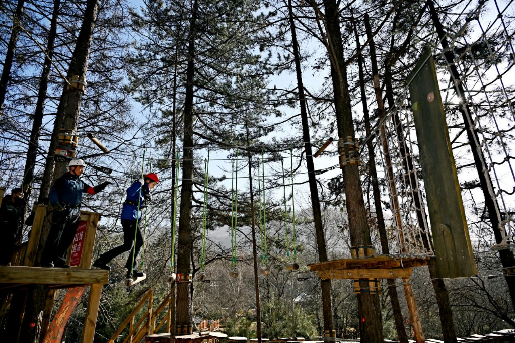 游客在大東溝森林旅游度假區(qū)體驗(yàn)叢林穿越。新華網(wǎng) 發(fā)
