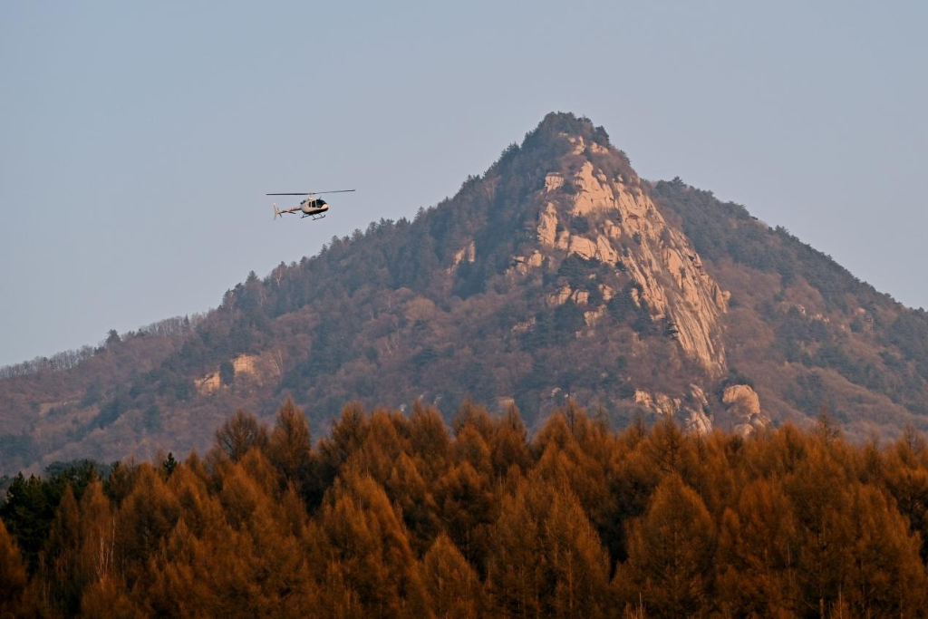 在大東溝森林旅游度假區(qū),游客搭乘直升機(jī)欣賞美景。新華網(wǎng) 發(fā)