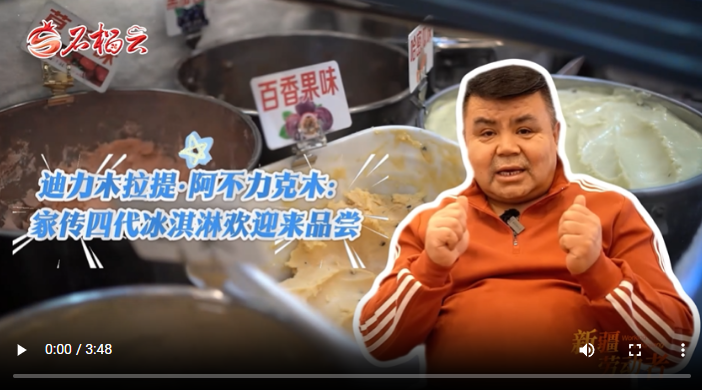 他爸爸還廣收徒弟,先后有266位疆內(nèi)外徒弟學(xué)成后自己開(kāi)店、傳藝。能讓更多人品到美味,迪力木拉提是開(kāi)心的。更讓他開(kāi)心的是當(dāng)?shù)厝思案鞯赜慰蛯?duì)他家冰淇淋的厚愛(ài)?!拔矣袝r(shí)候這樣想,如果我的顧客回家的時(shí)候,能想起我家的冰淇淋,再能想起我來(lái),我就特別開(kāi)心?!钡狭δ纠嵴f(shuō)。