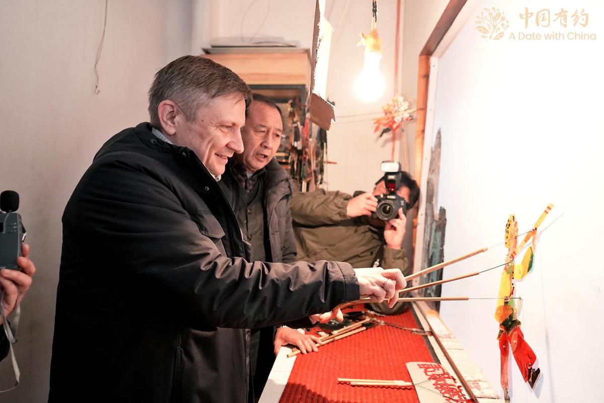 外國朋友體驗皮影戲表演。