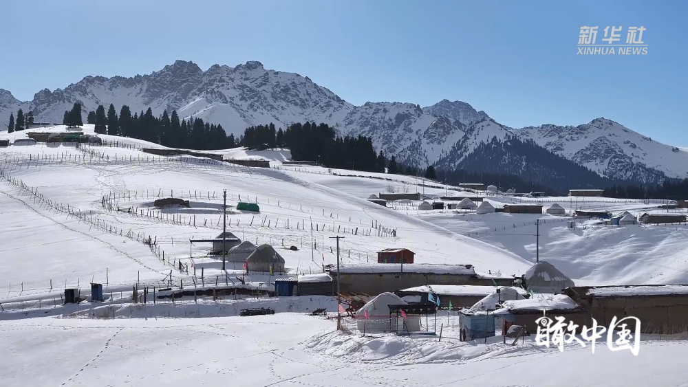 連綿的山巒披上了潔白的盛裝,峰巒疊嶂間,雪色如紗漫卷;層疊的田地靜臥于皚皚白雪之下,似千里素絹鋪展,盡顯大地的遼遠與柔美。無垠雪野中,馬兒悠然覓食,與遠處蒼勁的松林相映成趣。每一處風景都藏著江布拉克獨有的浪漫,共同勾勒出一幅靈動而靜謐的冬日畫卷。