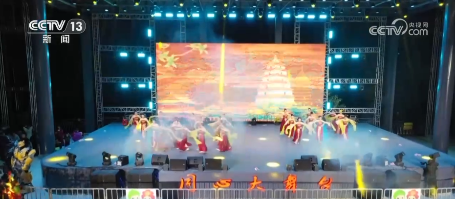 賞完了冰雕霧凇,大家可能已經(jīng)聽到了現(xiàn)場熱鬧的音樂聲,此刻,迎接新年的預(yù)熱演出已經(jīng)開場,演員們身著藏族服飾跳起歡快的鍋莊舞,舞蹈和歌聲中滿是對(duì)新年的喜悅與期待。
