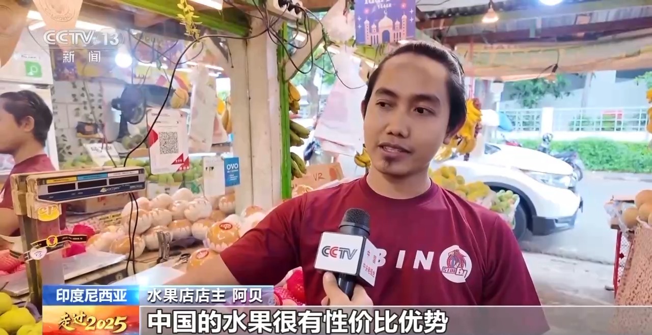 水果店店主 阿貝:中國的水果很有性價比優(yōu)勢,市場上的進口水果,主要來自中國、澳大利亞、美國,但占據(jù)主導(dǎo)的,大部分都來自中國。