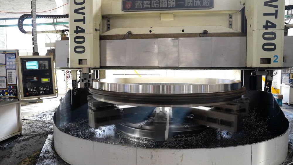 在洛軸集團(tuán)風(fēng)電軸承生產(chǎn)車間,一排排機(jī)床正井然有序地加工著一批風(fēng)電偏航軸承。