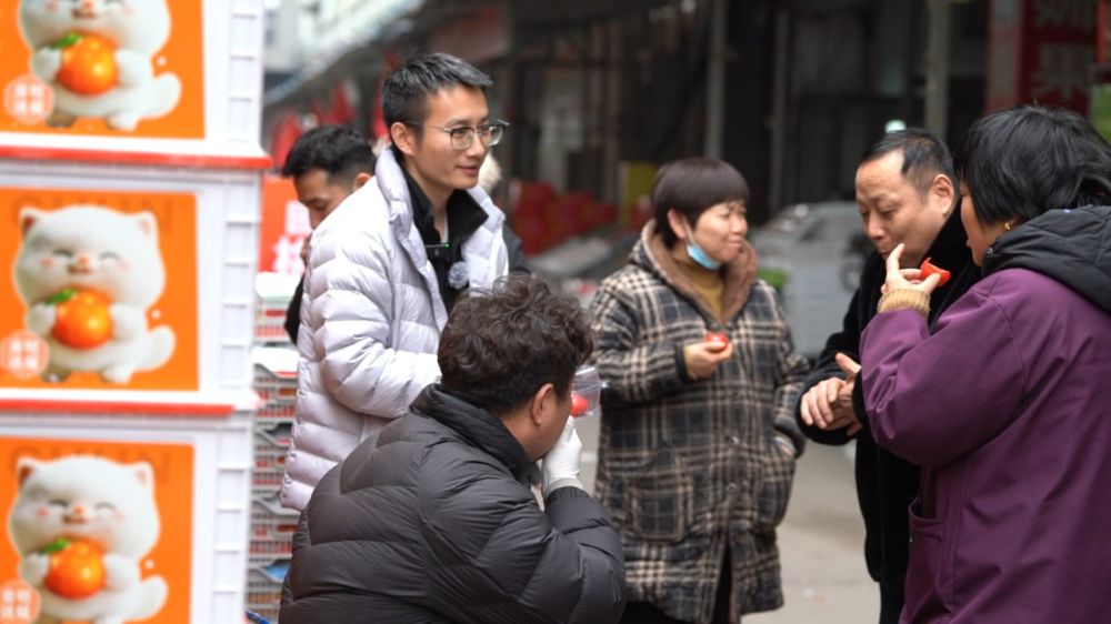 陳鎮(zhèn)在聽(tīng)水果商反饋“喀柿紅”口感