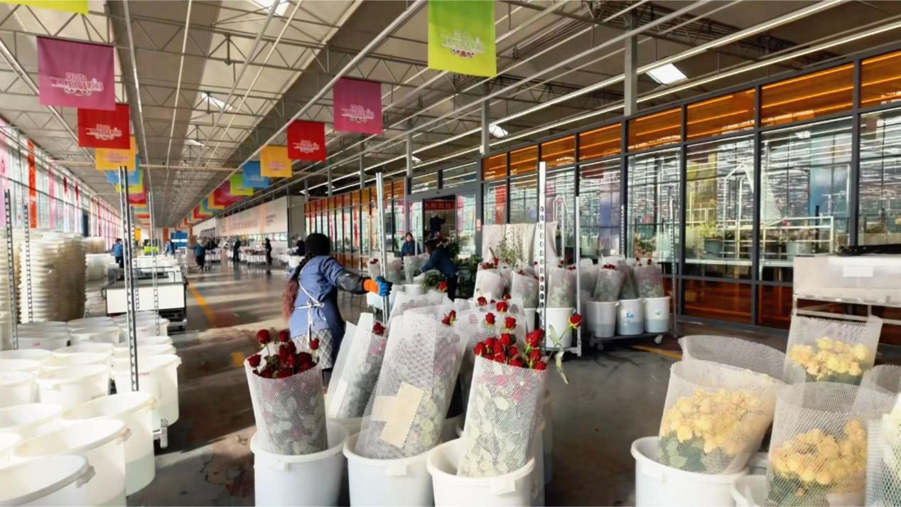 基地里,玫瑰以每40天一茬的速度茁壯生長,日產鮮切花達20萬枝。企業(yè)提供了超過500個就業(yè)崗位,不僅吸引本村村民,還有很多來自周邊縣區(qū)的務工者。許多像婷婷一樣的女工,在這里找到了人生第一份工作。
