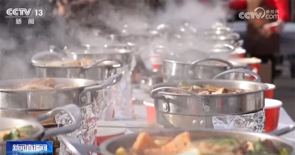 除了年貨采購,廣場(chǎng)中央熱氣騰騰的千人牛雜宴香氣四溢,引來眾多食客駐足品嘗?,F(xiàn)場(chǎng)還有互動(dòng)游戲、文藝演出等系列活動(dòng),讓市民與游客感受到濃濃的年味。