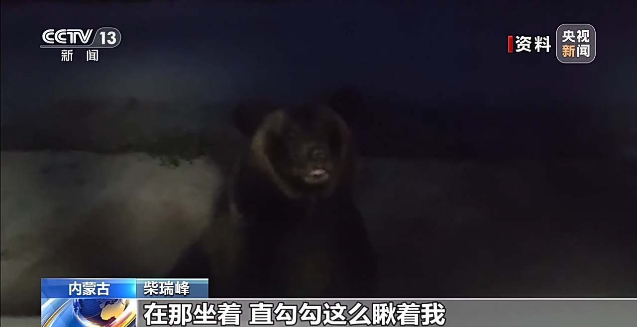 柴瑞峰:我就拿手機(jī)往后面一照,突然看見一只黑熊,它離我就四五米遠(yuǎn)的距離上,在那坐著,直勾勾這么瞅著我,這個手機(jī)的亮光,照在這個熊的眼睛上,它冒那個光。當(dāng)時心里就特別特別害怕,跟前有一棵樹,我順著那棵樹爬上去了。