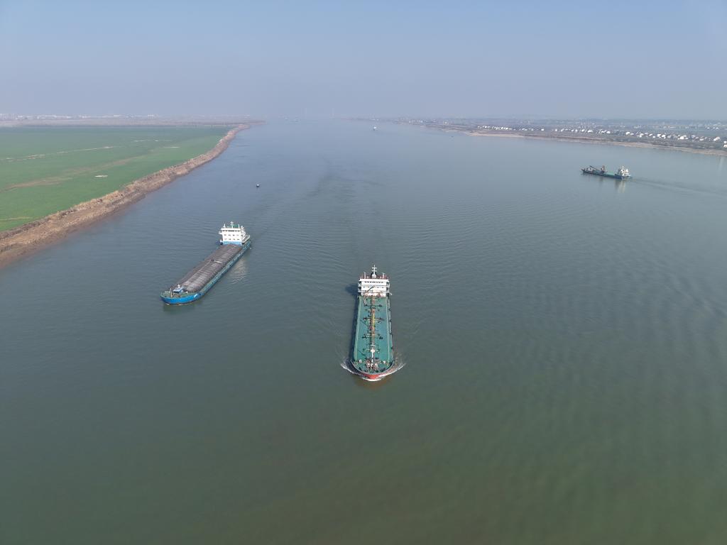 這是在湖南省臨湘市江南鎮(zhèn)長(zhǎng)江村拍攝的長(zhǎng)江(無人機(jī)照片)。新華社記者丁春雨 攝