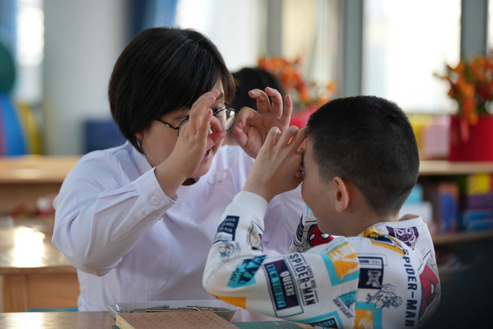 “龍龍之前無法獨(dú)立行走、不能清晰表達(dá),甚至不能握筆。通過日復(fù)一日的康復(fù)訓(xùn)練,如今他能寫自己的名字,還能背出幾首古詩?!秉S會青蹲下身子,擁著龍龍告訴記者,“這孩子性格開朗,為表演好節(jié)目,這幾天他專門對著鏡子練口型發(fā)音。”