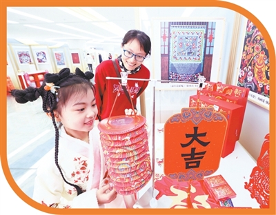小朋友在北京奧運(yùn)博物館新春系列活動(dòng)上觀賞燈籠。