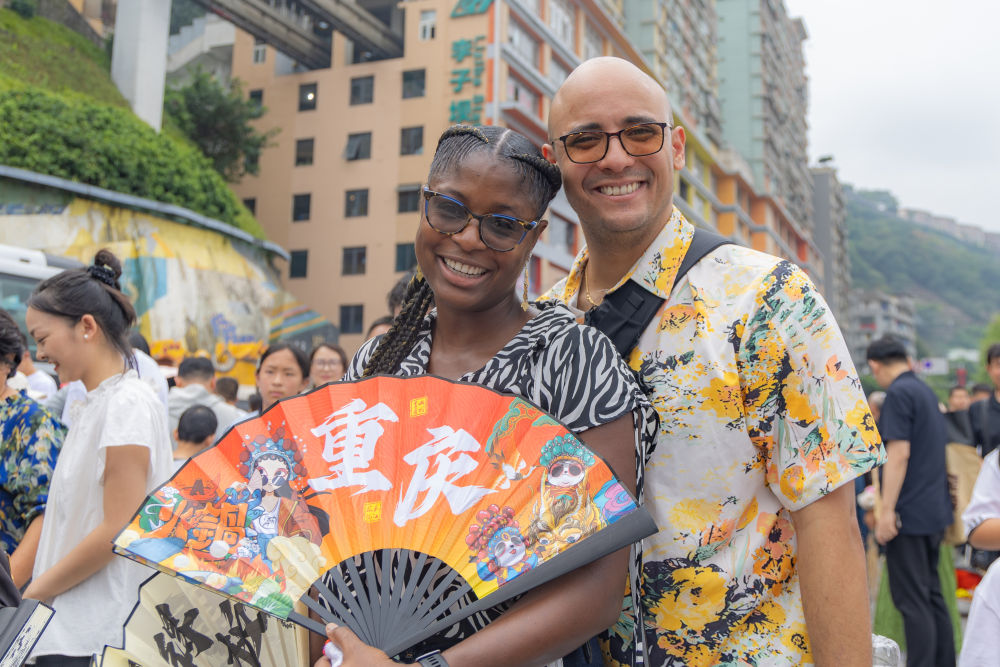 2025年10月3日,加拿大游客克里斯提安(左)和家人在重慶市渝中區(qū)李子壩游玩。近年來(lái),不斷優(yōu)化的入境政策為境外游客赴華提供了更多便利,“來(lái)華旅游攻略”“赴華購(gòu)物清單”等成為國(guó)外社交媒體熱門(mén)搜索關(guān)鍵詞,“China Travel”的熱度延續(xù)至今。山城重慶憑借其獨(dú)特的城市景觀和風(fēng)土人情,吸引不少外國(guó)游客前來(lái)品嘗美食、打卡景點(diǎn)、體驗(yàn)文化。
