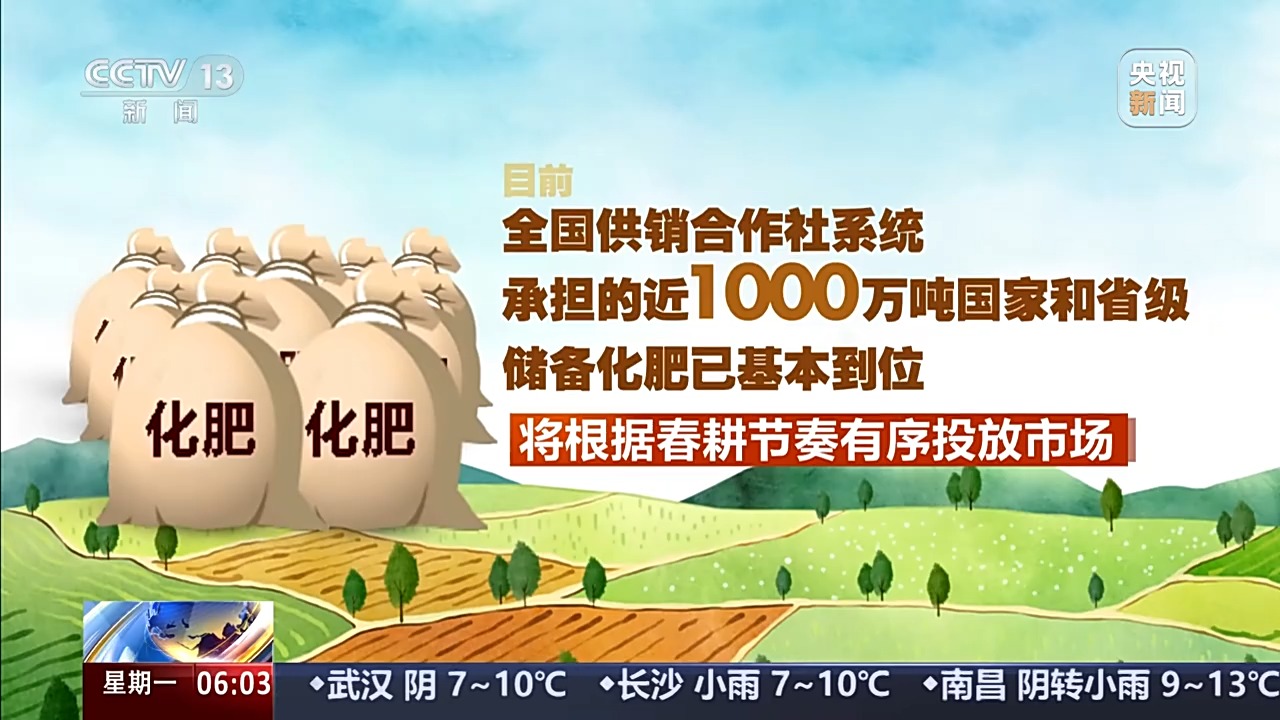 目前,全國供銷合作社系統(tǒng)承擔的近1000萬噸國家和省級儲備化肥已基本到位,將根據春耕節(jié)奏有序投放市場。