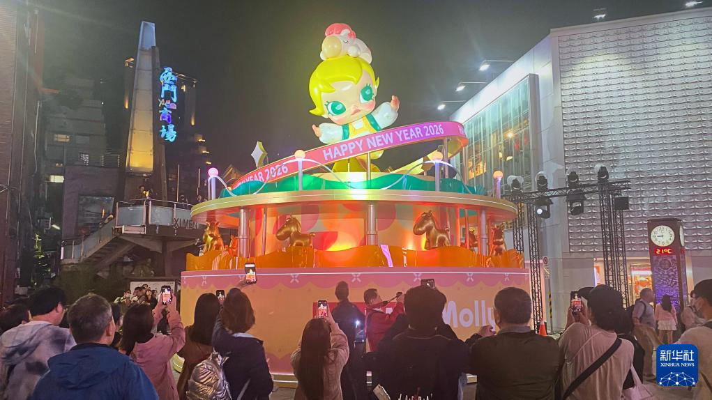另一展區(qū)西門町則攜手大陸品牌“泡泡瑪特”,以6個人氣IP的馬年全新造型為核心,打造五座特色燈組。臺北市民徐小姐手里拿著“LABUBU”造型紅色氣球逛燈會?!斑@些燈組很可愛,也為西門町商圈增添了新活力。”她說。