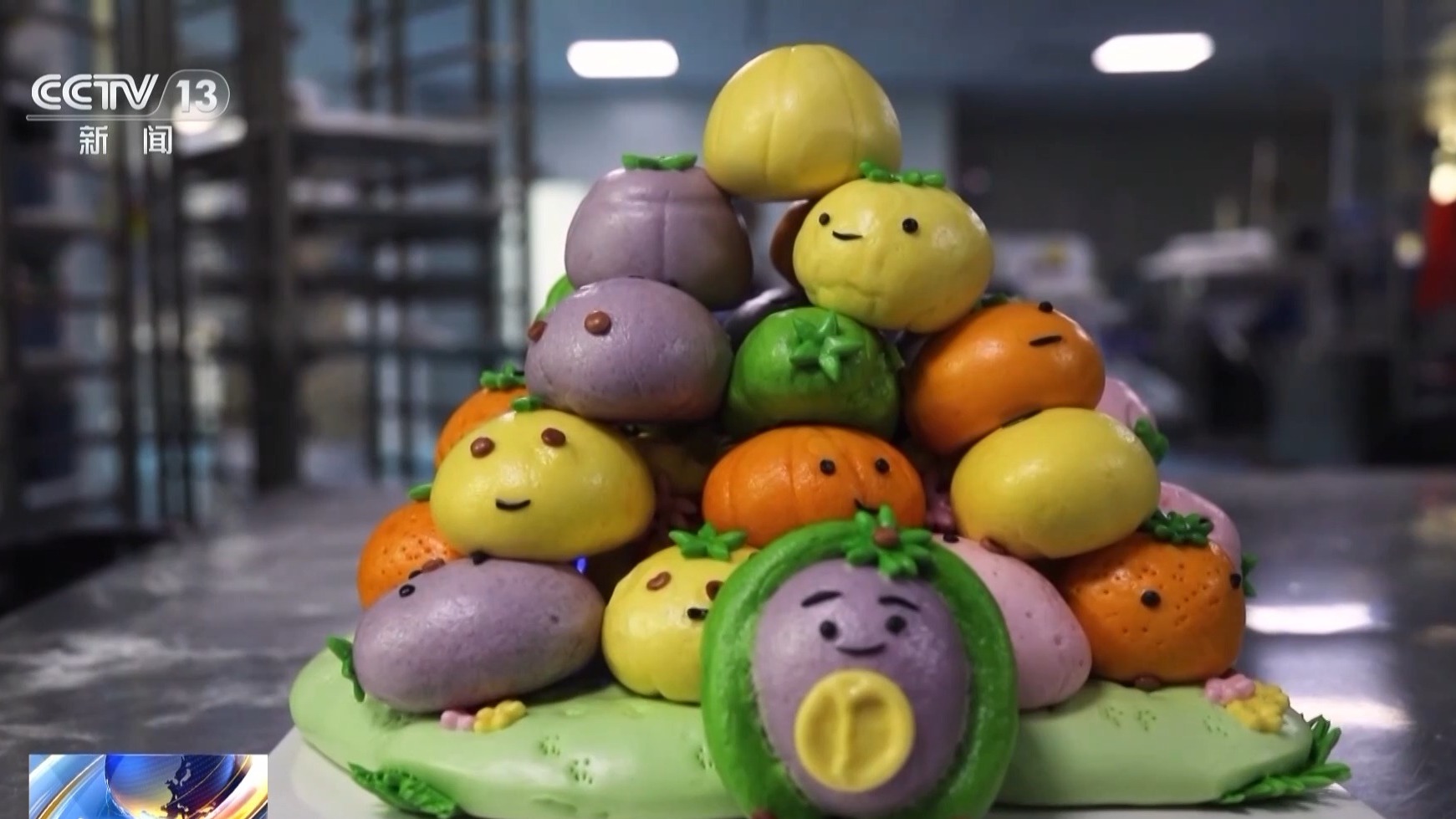 孩子們發(fā)揮想象,用各色面團(tuán)捏制成燕子、南瓜、柿子等卡通造型,經(jīng)過組裝與蒸制,一個(gè)“卡通餑餑塔”很快出鍋。