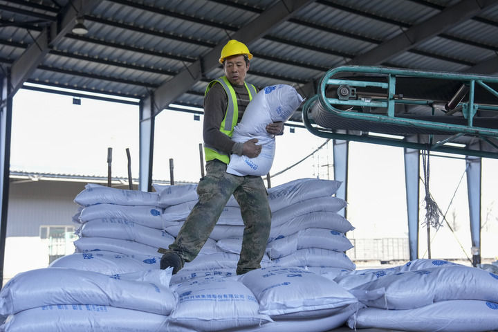 眼下,東北進(jìn)入備耕關(guān)鍵期。在產(chǎn)糧大縣吉林省農(nóng)安縣,吉林乾溢農(nóng)業(yè)發(fā)展專業(yè)合作社聯(lián)合社的化肥加工廠內(nèi),工人們正將一袋袋化肥裝車,運(yùn)往各村農(nóng)民合作社。