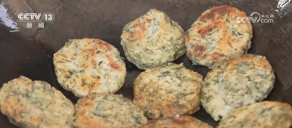 做蒿子粑,選料是第一步。早上新鮮采摘的蒿子清香撲鼻,清洗后焯一下水就能去除它的苦澀味。熬煮好的臘肉蒿子湯倒入糯米和秈米混合的米粉中,揉搓成小團(tuán)再壓扁。起鍋燒油煎至雙面酥黃,蒿子粑就做好了。在桐城市,蒿子粑還走進(jìn)工廠,進(jìn)行規(guī)?;a(chǎn),通過(guò)直播進(jìn)行線上銷售,深受消費(fèi)者喜愛(ài)。