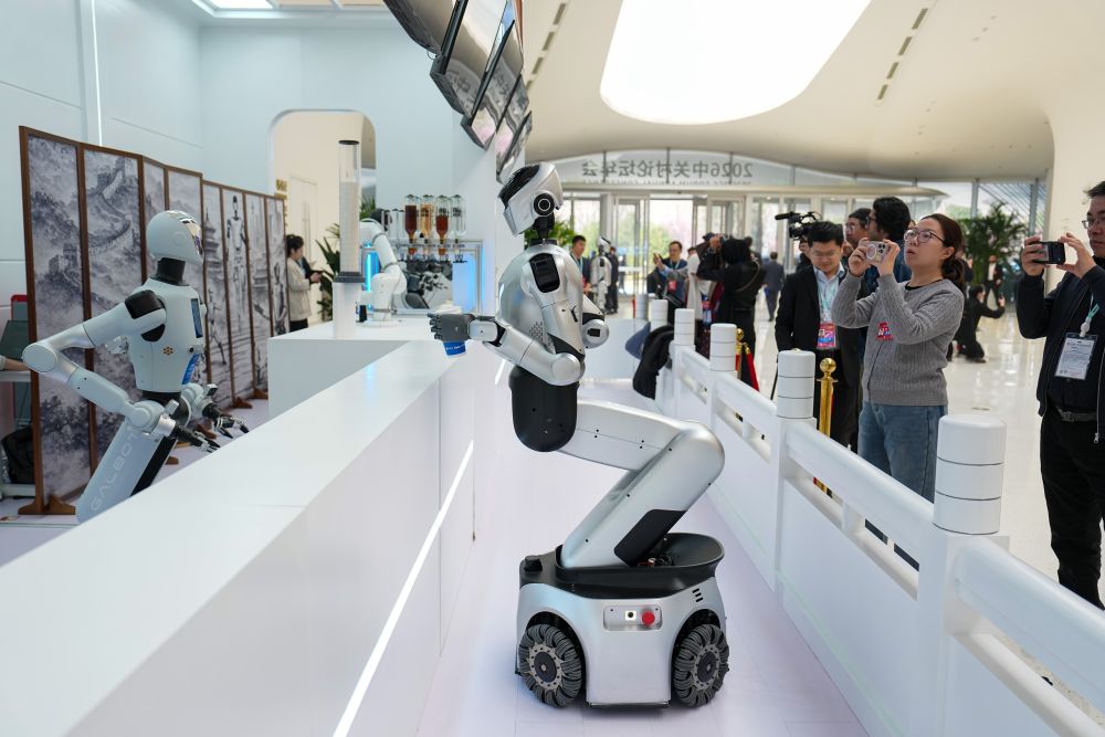 3月25日,在中關(guān)村國(guó)際創(chuàng)新中心,嘉賓在參觀機(jī)器人餐吧。 新華社記者 鞠煥宗 攝