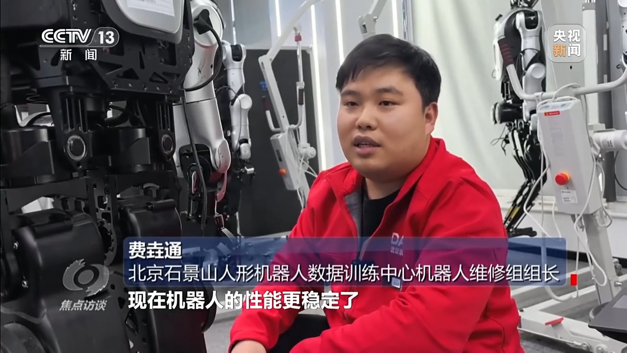 北京石景山人形機器人數(shù)據(jù)訓練中心機器人維修組組長 費垚通:半年前,機器人需要維修的頻率比現(xiàn)在高,現(xiàn)在機器人的性能更穩(wěn)定了。但是,真正走入實際工作場景,還需要很多訓練任務。不過看到它現(xiàn)在的進步效率,我堅信它能夠在不久的未來,在更艱苦、更危險的環(huán)境替我們分擔工作,我相信這一天一定會到來。