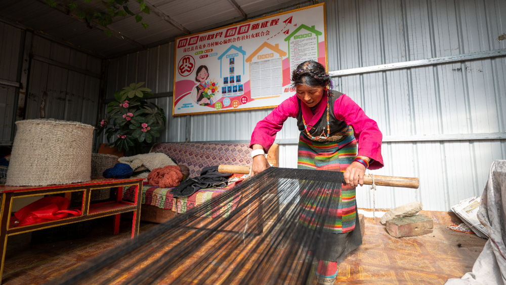 3月25日,西藏日喀則市崗巴縣直克鄉(xiāng)乃村順心合作社員工在編織氆氌。新華網(wǎng) 旦增努布 攝