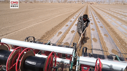 在高標(biāo)準(zhǔn)棉田里,兩臺(tái)搭載北斗導(dǎo)航系統(tǒng)的現(xiàn)代化棉花播種機(jī)來(lái)回穿梭,覆膜、播種、覆土等工序一氣呵成,一臺(tái)機(jī)器一天可完成上百畝地的播種任務(wù),還能實(shí)現(xiàn)無(wú)人駕駛、精準(zhǔn)直線(xiàn)播種、地膜覆蓋、滴灌帶鋪設(shè)等多種工作,播種效率較傳統(tǒng)方式大幅提升。