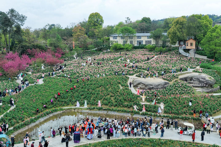 2026年3月22日,游客在重慶市巴南區(qū)二圣鎮(zhèn)集體村云林天鄉(xiāng)景區(qū)踏青游玩(無人機(jī)照片)。近年來,重慶市巴南區(qū)二圣鎮(zhèn)集體村依托云林天鄉(xiāng)景區(qū),發(fā)展都市休閑觀光農(nóng)業(yè),深入推進(jìn)農(nóng)文旅深度融合發(fā)展,通過打造油菜花、金魚草等不同品種的四季高山花海主題景區(qū),實(shí)現(xiàn)從過去苗木基地“賣苗木”到鄉(xiāng)村旅游“賣景觀”的轉(zhuǎn)變,帶動村民增收致富。新華社記者 黃偉 攝