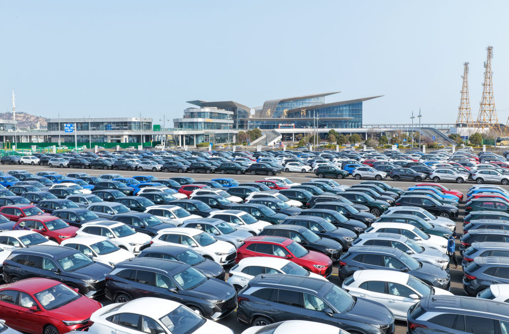 2026年3月10日拍攝的江蘇省連云港港出口汽車堆場(無人機(jī)照片)。新華社發(fā)(王健民攝)